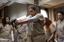 | La confrontation dans la prison se transforme en une émeute sans merci et les détenues sont bien décidées à profiter de la confusion générale. Taystee affronte Caputo. | |||||